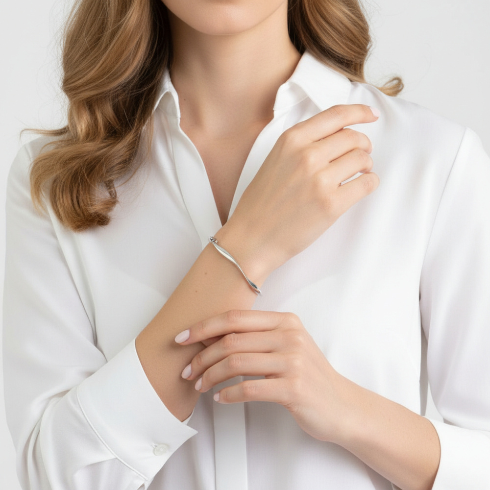 La grande simplicité de ses lignes est ce qui fait le charme de ce bracelet en or blanc 375.