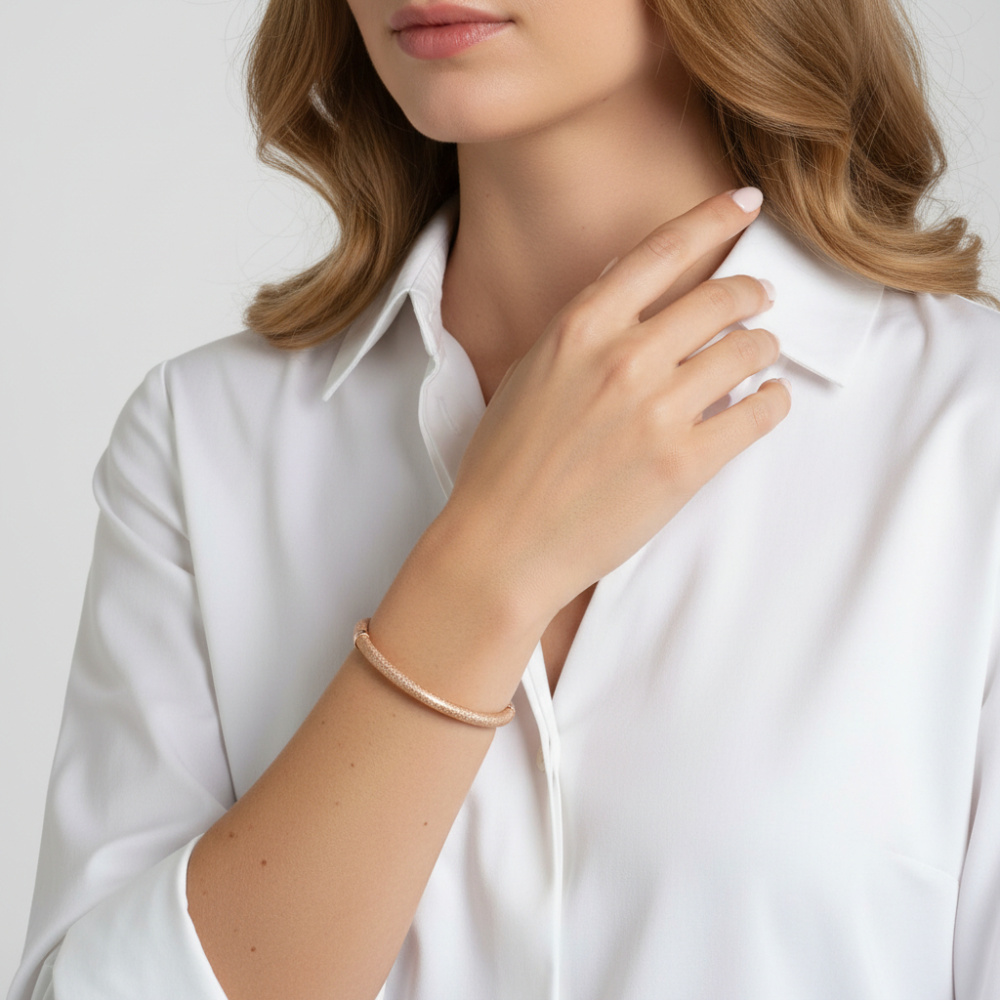 Jonc or rose 375 section ronde martelée 5mm - Ref : 48670