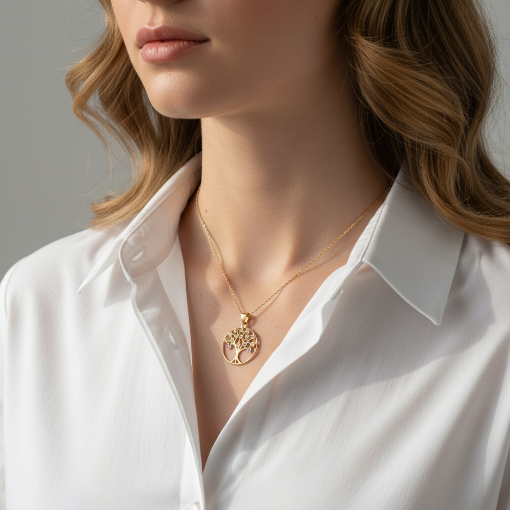 Pendentif 2 ors avec un arbre de vie dans un cercle de 19mm de diamètre