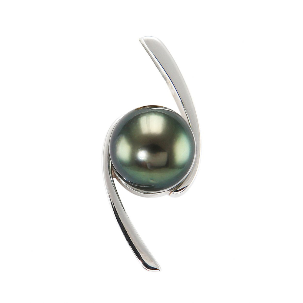 Pendentif en Or Blanc 750 serti d'une Perle de culture de Tahiti ronde de 8mm