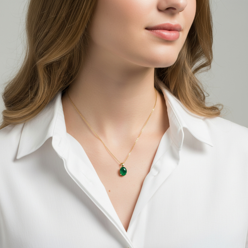 Pendentif en Or Jaune 750 serti d'une émeraude ovale de 10x8mm