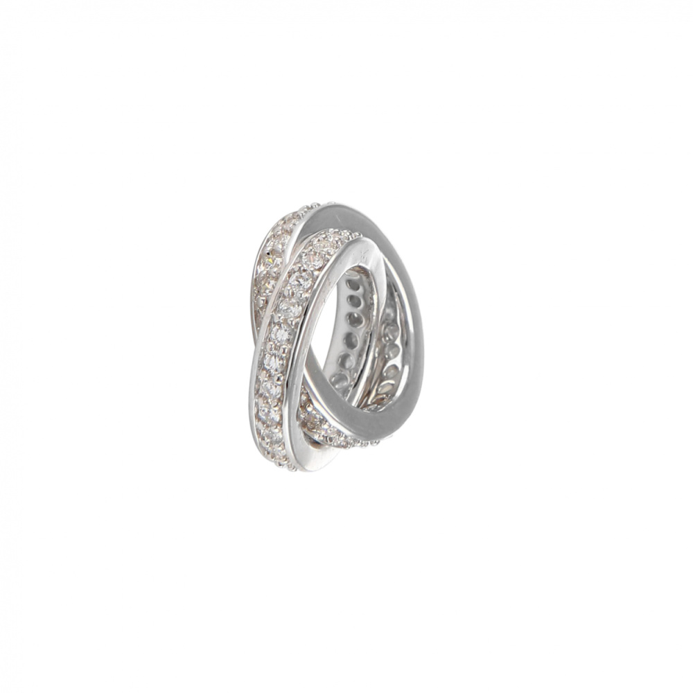 Charm en argent rhodié composé de 2 anneaux entreacés sertis d'oxydes de zirconium