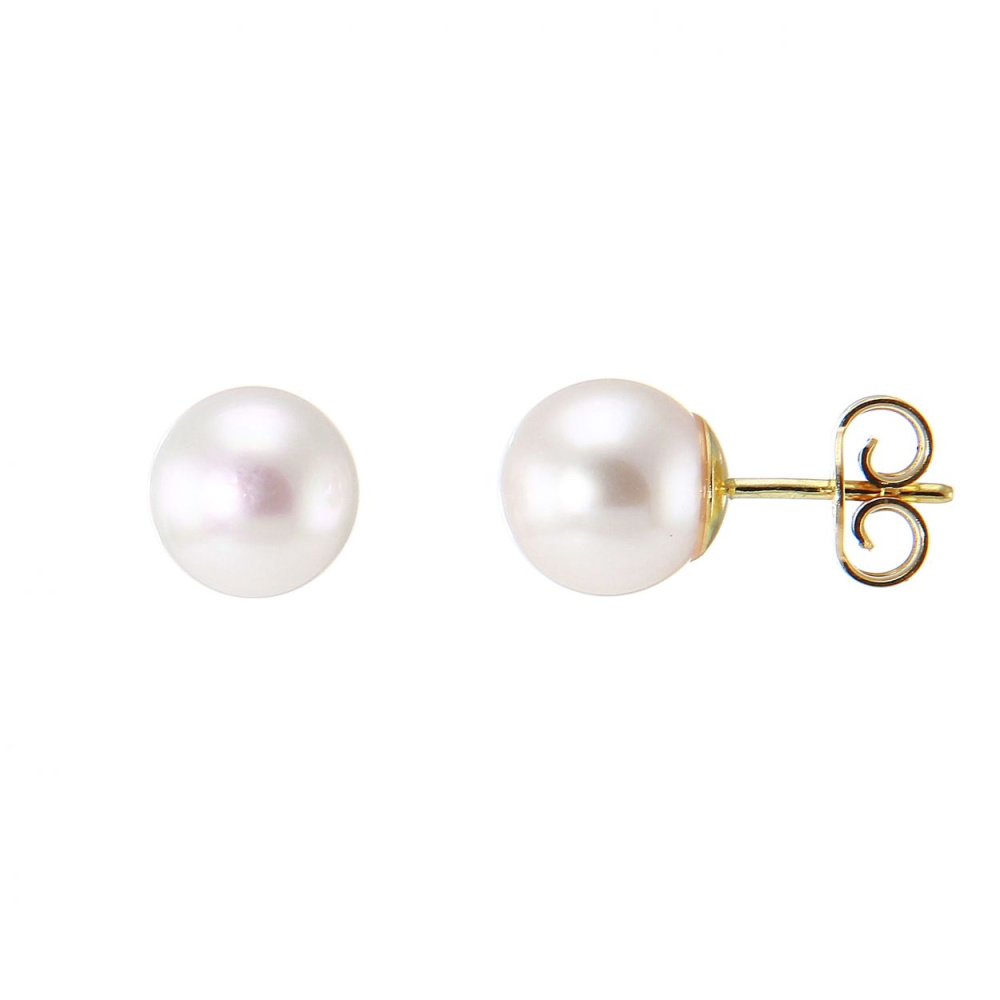 Boucles d'oreilles en Or Jaune 750 et Perles de culture Akoya 7mm