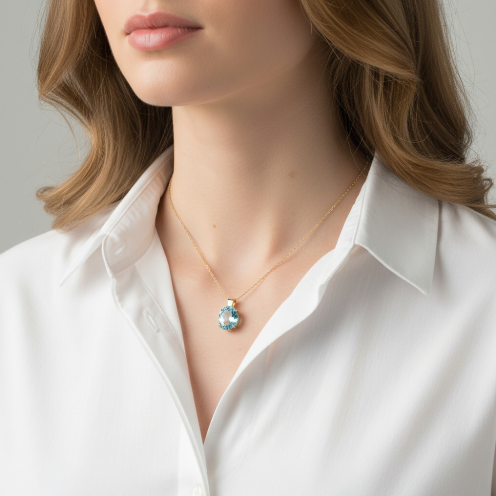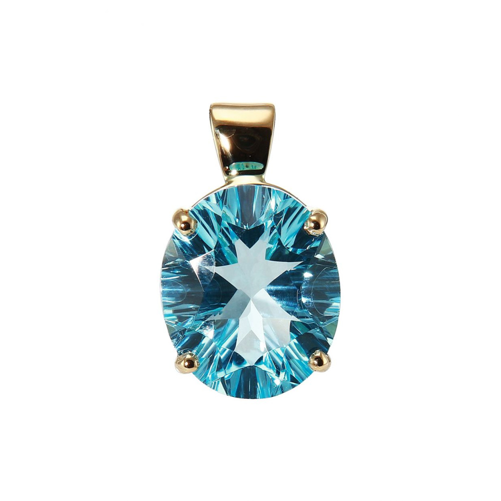 Pendentif Or Jaune 750 Topaze Bleue traitée Ovale 12x10mm