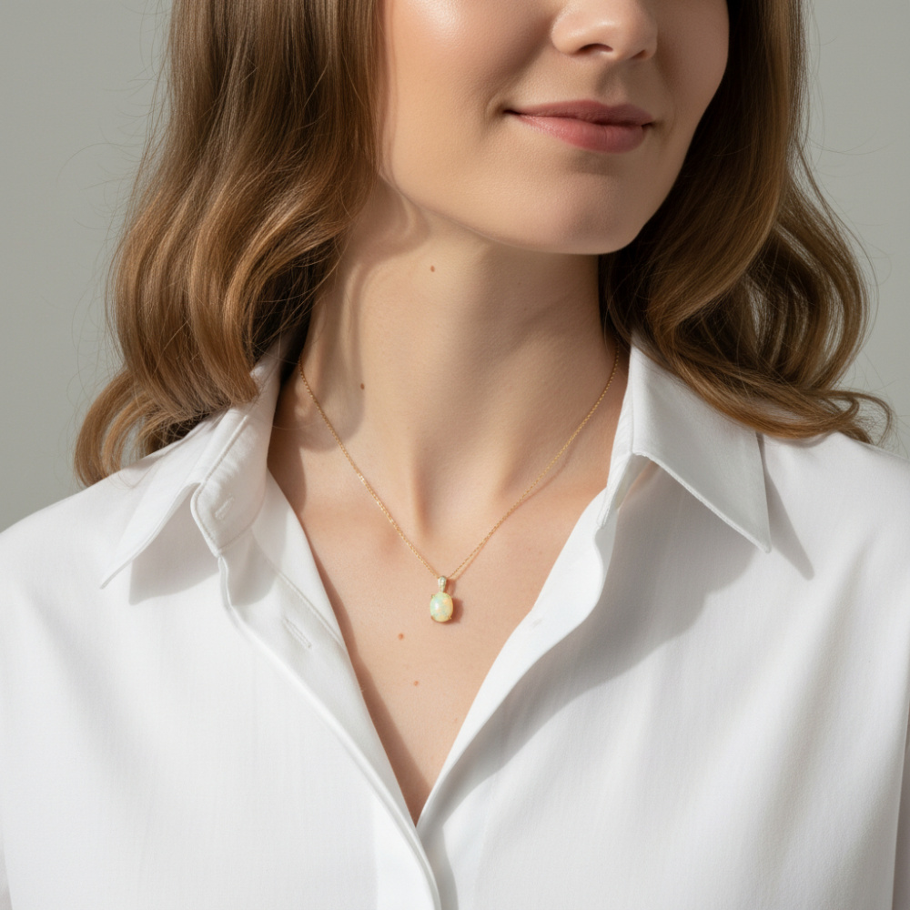 Pendentif Or Jaune 750 Opale Ovale 9x7mm et diamants