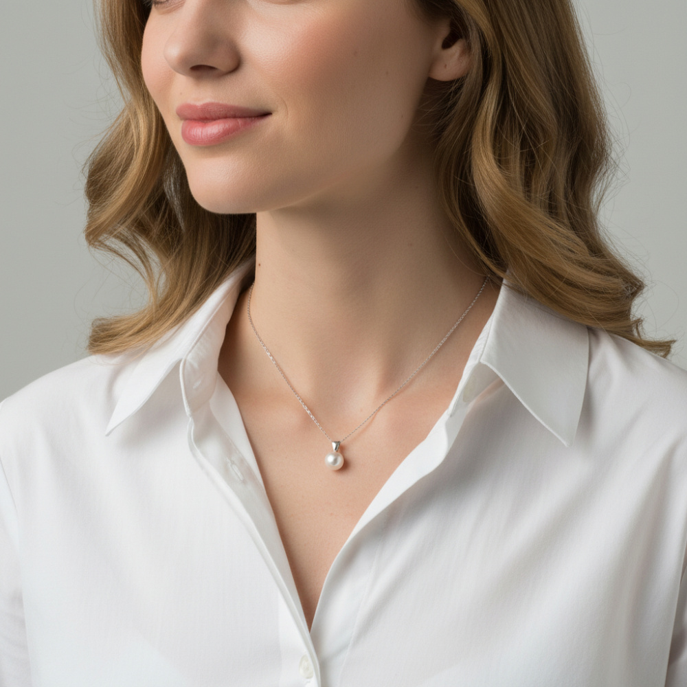 Pendentif Or Blanc 750 et Perle de culture Akoya 9mm