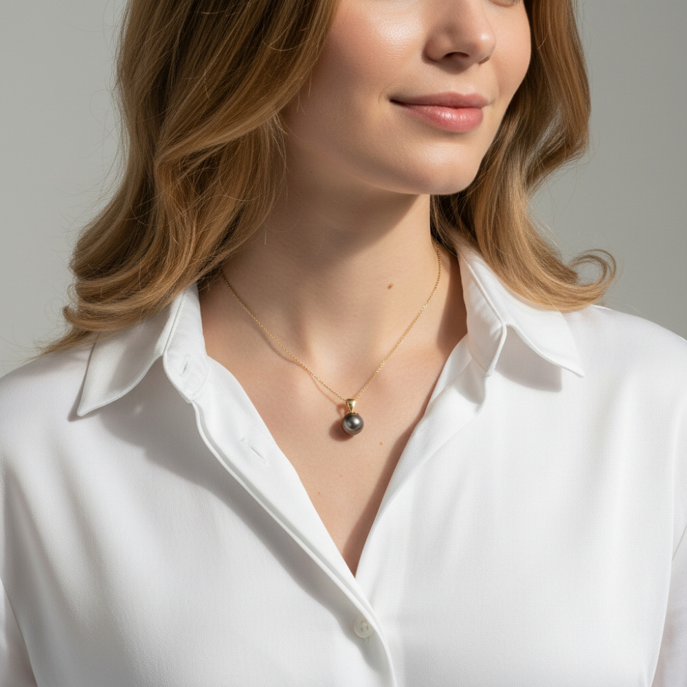 Pendentif Or Jaune 750 et Perle de culture Tahiti 8.5mm