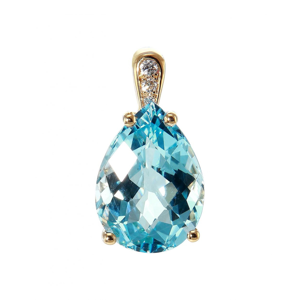 Pendentif en Or Jaune 750 serti d'une topaze Bleue traitée et de diamants