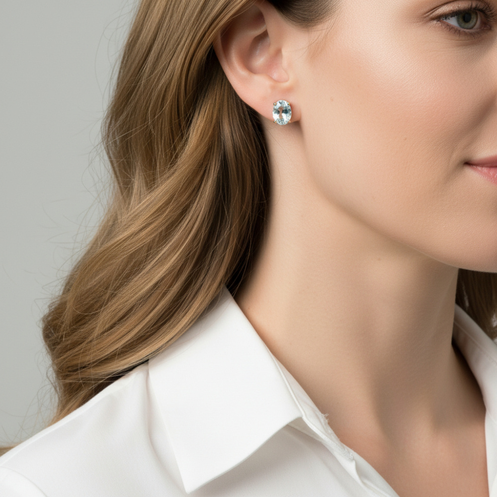 Boucles d'oreilles Or Jaune 750 Aigue Marine Ovale 8x6mm