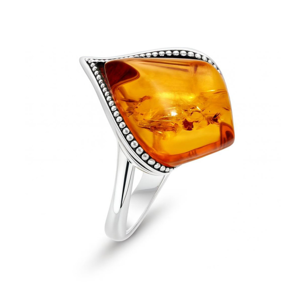 Cette bague en argent 925 procurera de la sensualité à chacun de vos mouvements. Dédiée aux femmes dans l'air du temps, elle est embellie d'un ambre de couleur cognac issue de la Baltique qui illumine le bijou avec ses tons ensoleillés. La pierre est entourée d'un filet d'argent qui la protège des chocs et des rayures.