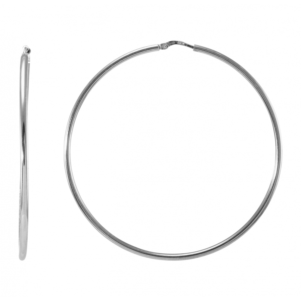 Créoles en argent rhodié de forme ronde avec un diamètre de 60mm