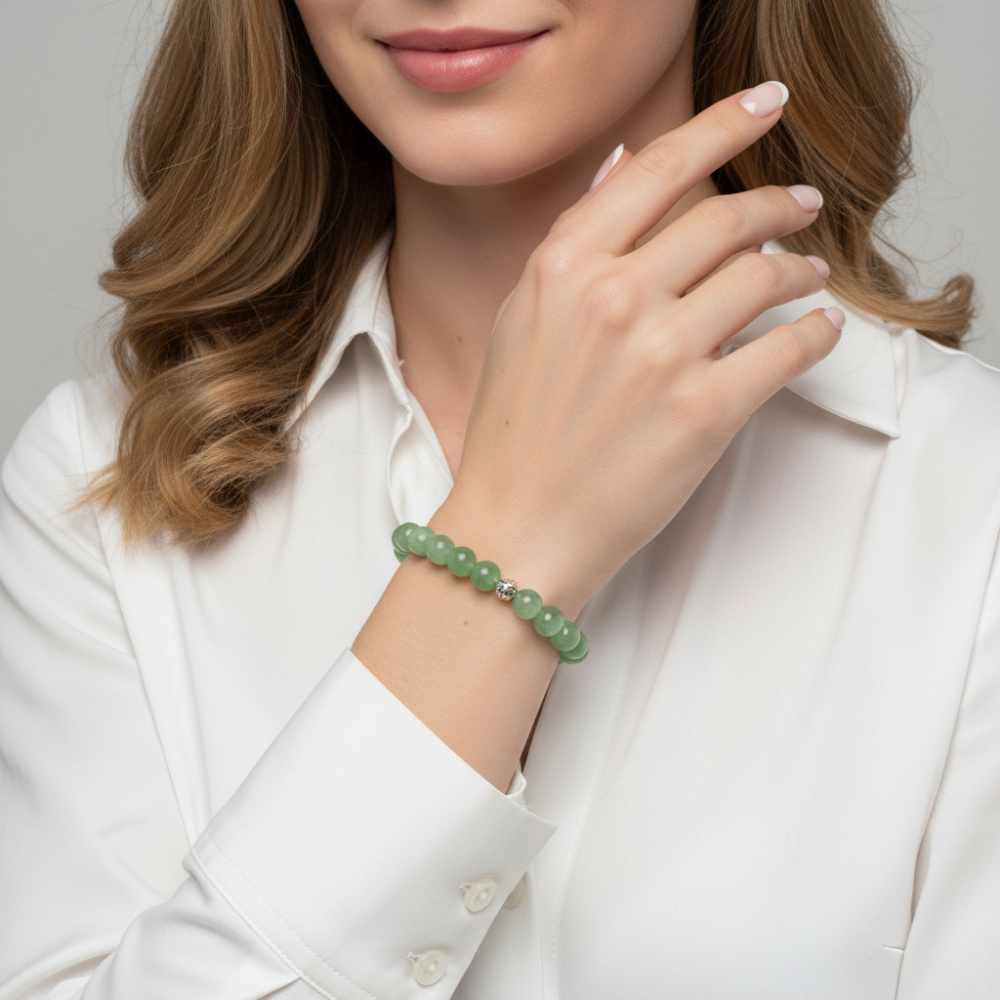 Le bijou s'illumine grâce aux 20 perles d'aventurines qui viennent joliment l'embellir.