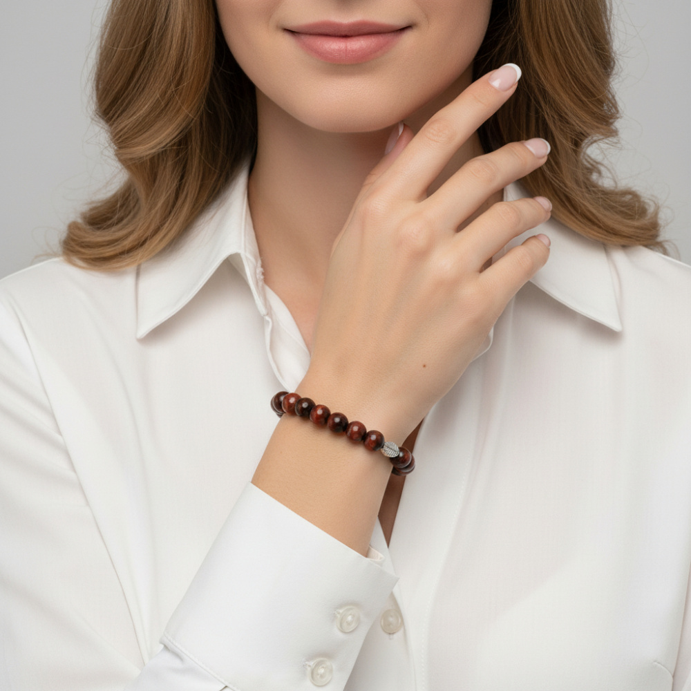 Bracelet Oeil de Taureau 8mm et Motif Feuille