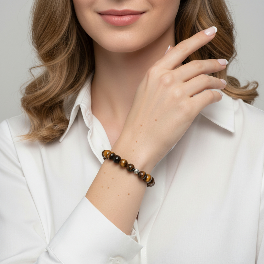 Bracelet Oeil de tigre 8mm et Oeil porte bonheur