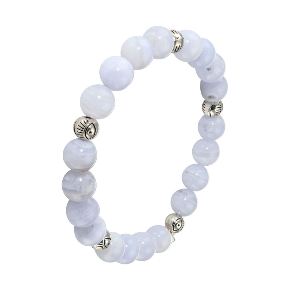 Bracelet Calcédoine 8mm et Oeil porte bonheur