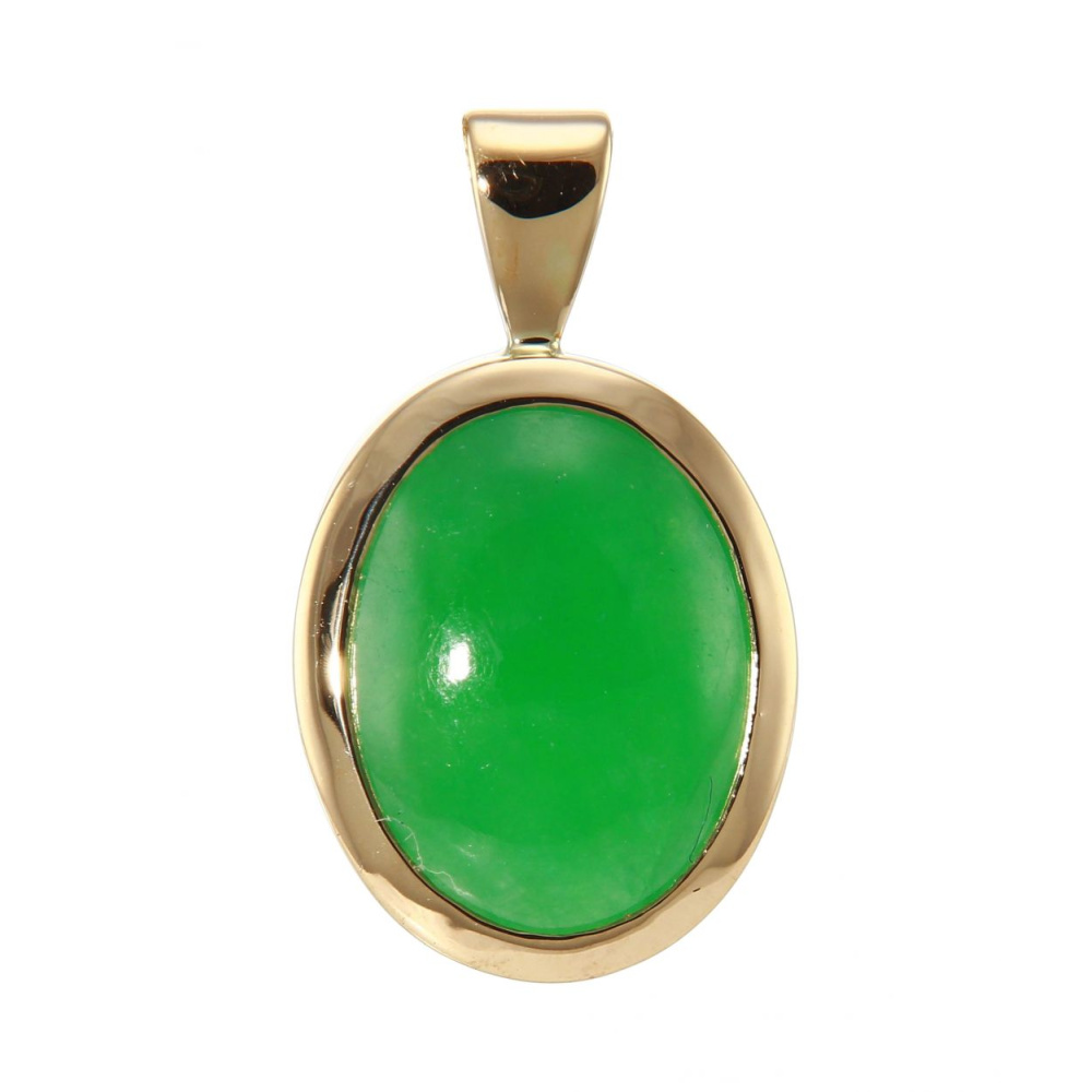 Pendentif en Or Jaune 750 serti d'un Jade Ovale de 14x11mm