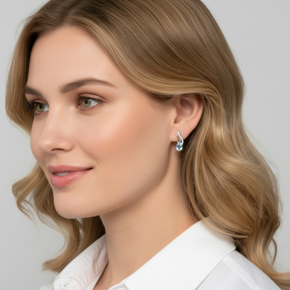 Boucles d'oreilles en Argent 925 Rhodié Topaze bleue traitée Poire 6x4mm et Oxydes