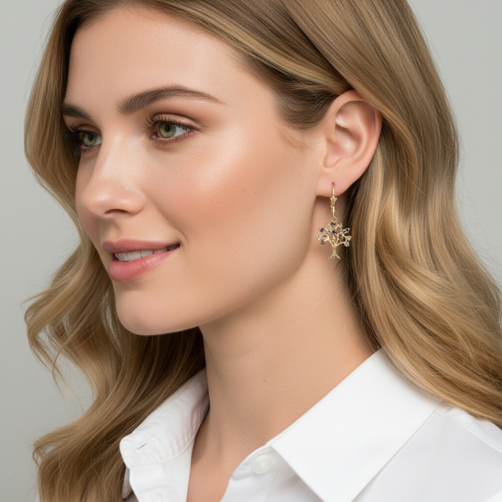 Boucles d'oreilles dormeuses Arbre de vie 3 ors 375