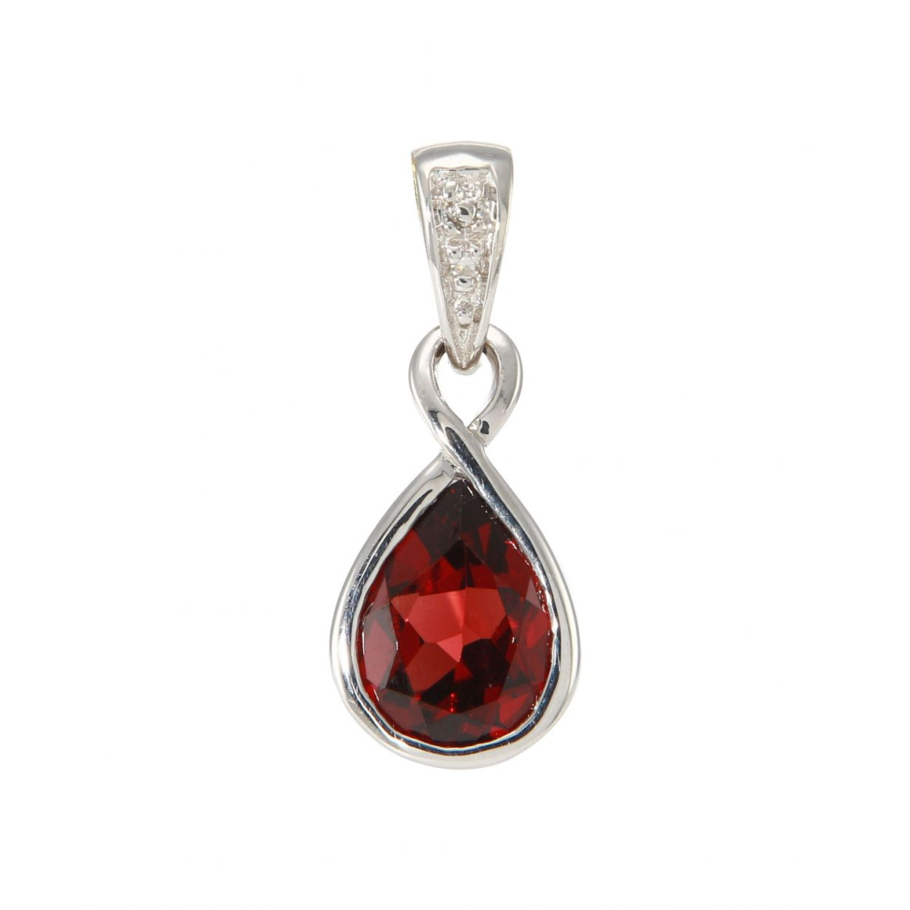 Pendentif Infini Or Blanc 375 Grenat Poire 8x6mm et Diamant