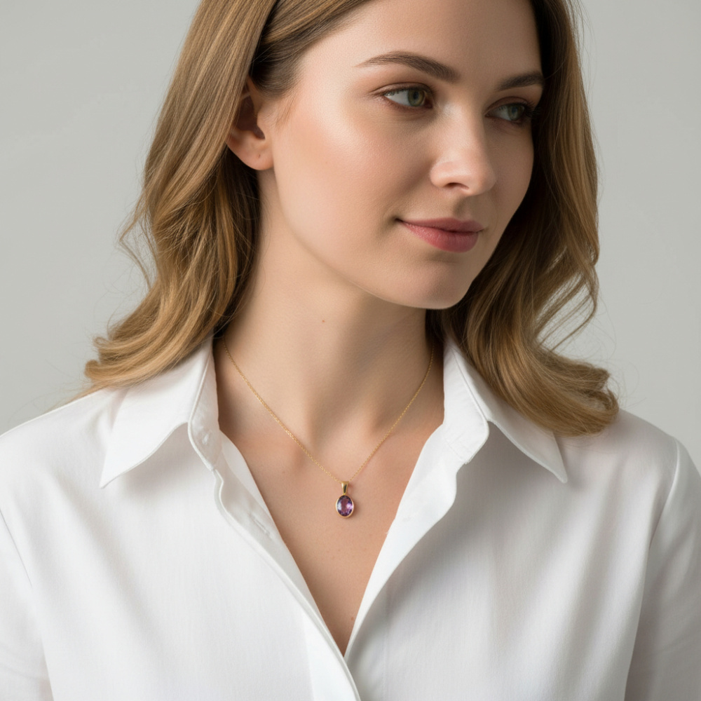 Pendentif serti d'une Améthyste ovale de 9x7mm
