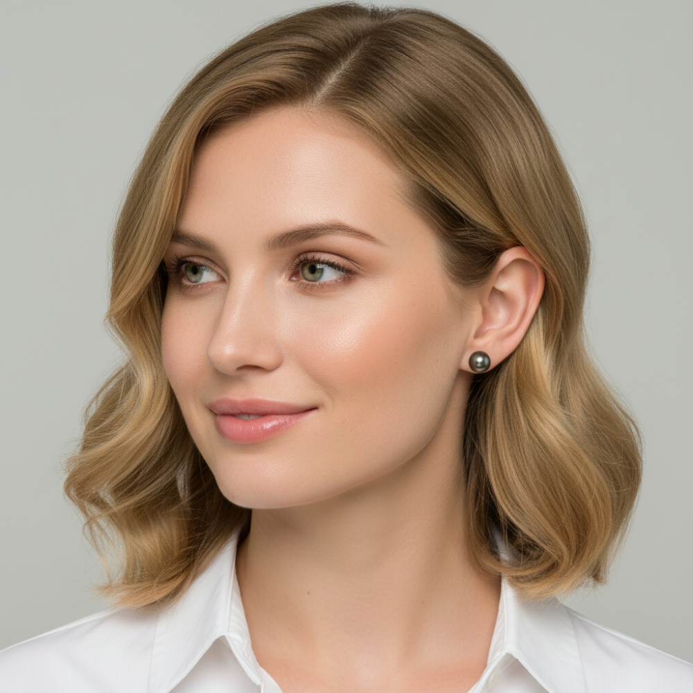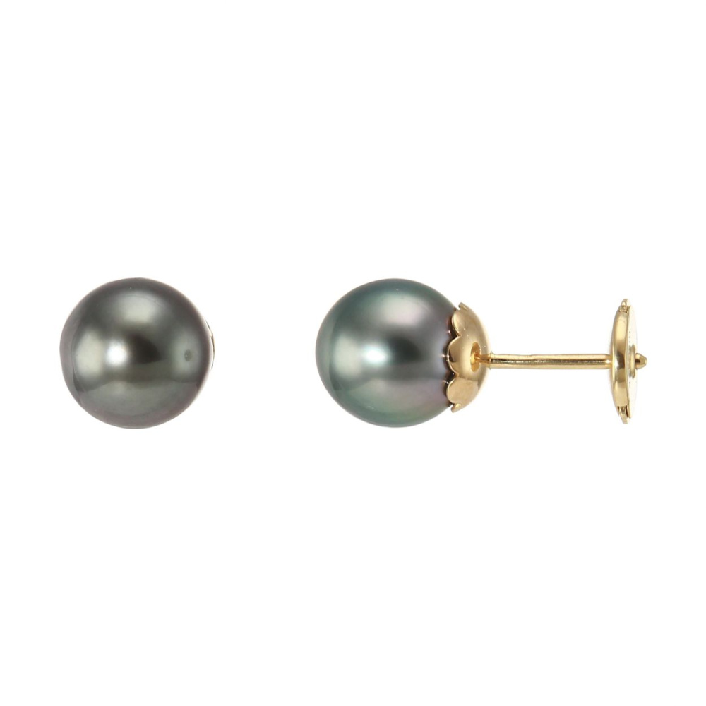 Boucles d'oreilles Or Jaune et Perles de culture de Tahiti 8.5mm