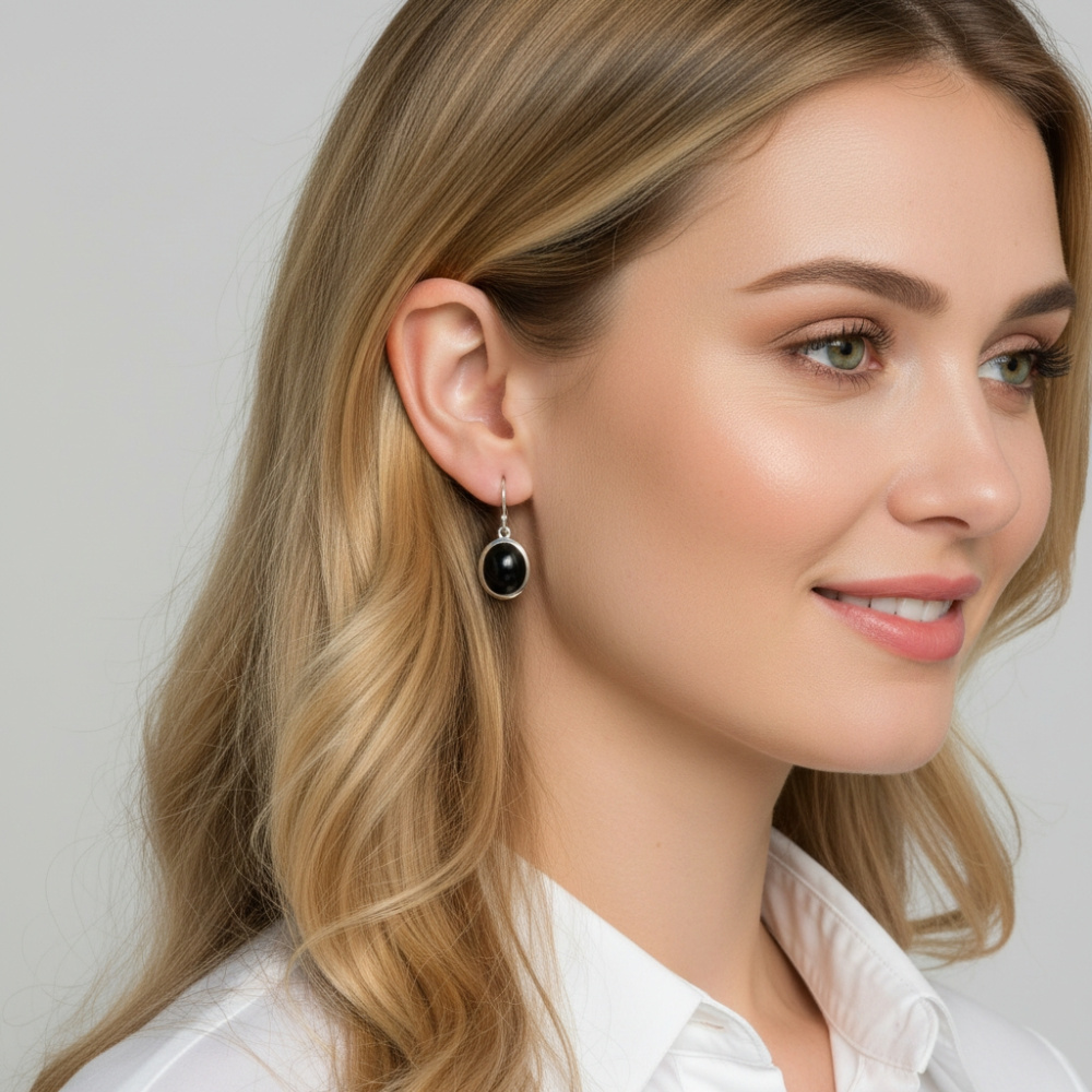 Boucles d'oreilles Pendantes Argent 925 Onyx Ovale 12x10mm