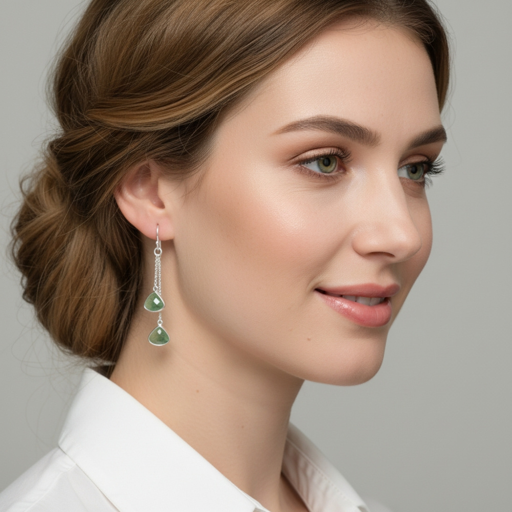 Boucles d'oreilles Pendantes Argent 925 Aventurines Triangulaires
