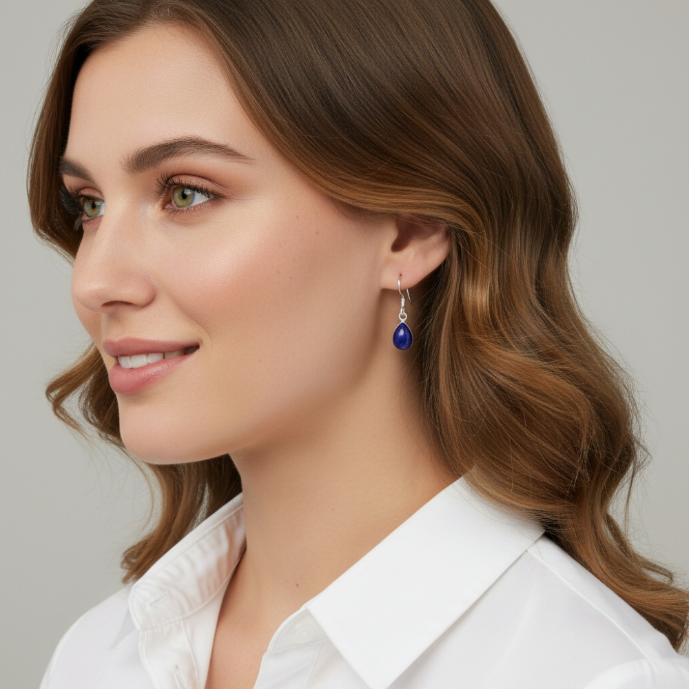 Boucles d'oreilles Pendantes Argent 925 Lapis Lazuli Poire 10x7mm