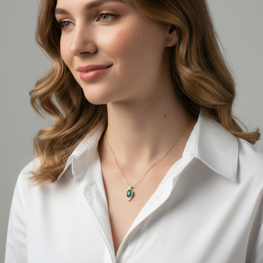 Pendentif en or jaune 750 serti d'une émeraude ovale de 10x8mm
