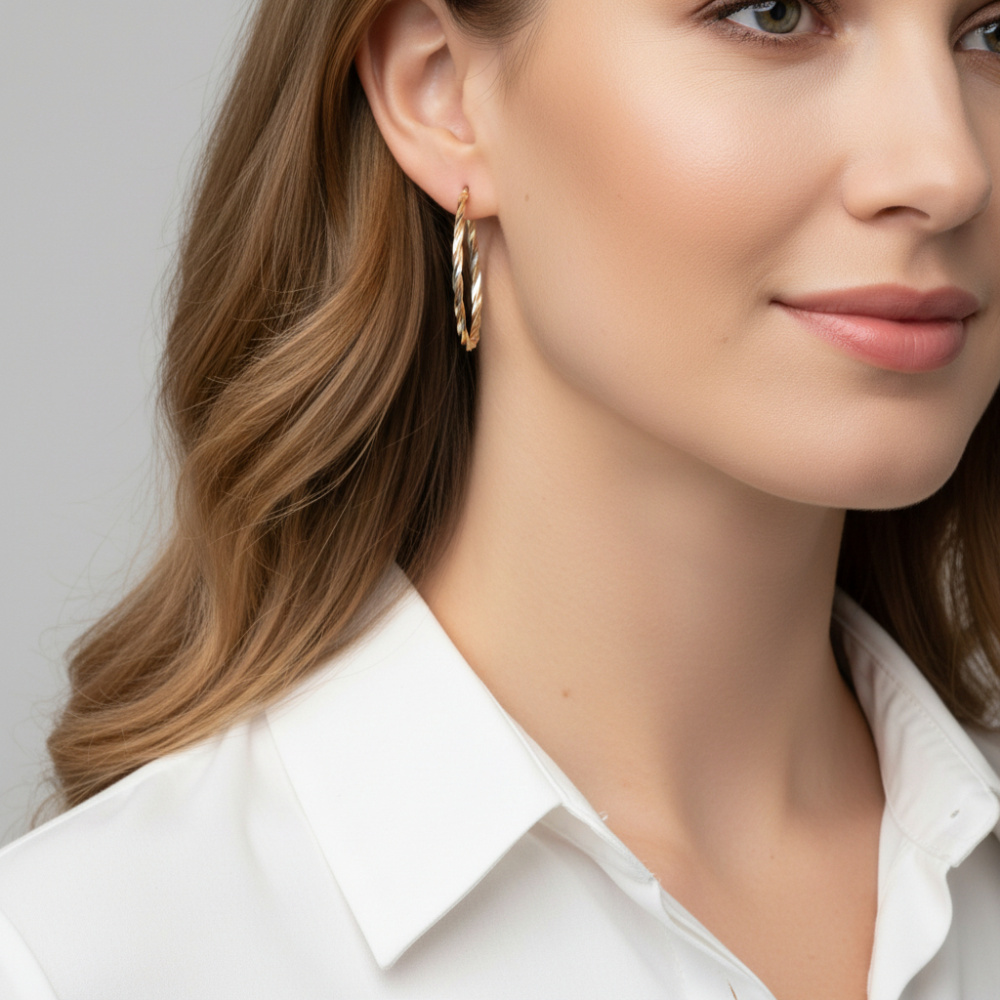 Créoles Torsadées 2.5mm x 40mm Or Jaune 375