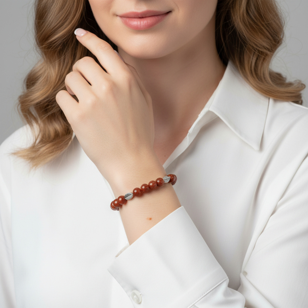 Laissez-vous séduire par le dynamisme et l'élégance de ce bracelet pour femme. Au-delà d'être un accessoire de mode, il s'agit également d'un porte-bonheur qui vous protègera au quotidien. Le bijou est joliment embelli de 20 perles de cuivre rouge façonnées en boule et à la surface lisse. Ce minéral permettrait de rééquilibrer les émotions avec le mental et d'augmenter l'intuition artistique et la créativité. Les perles sont intercalées par des motifs en métal prenant la forme de feuille.