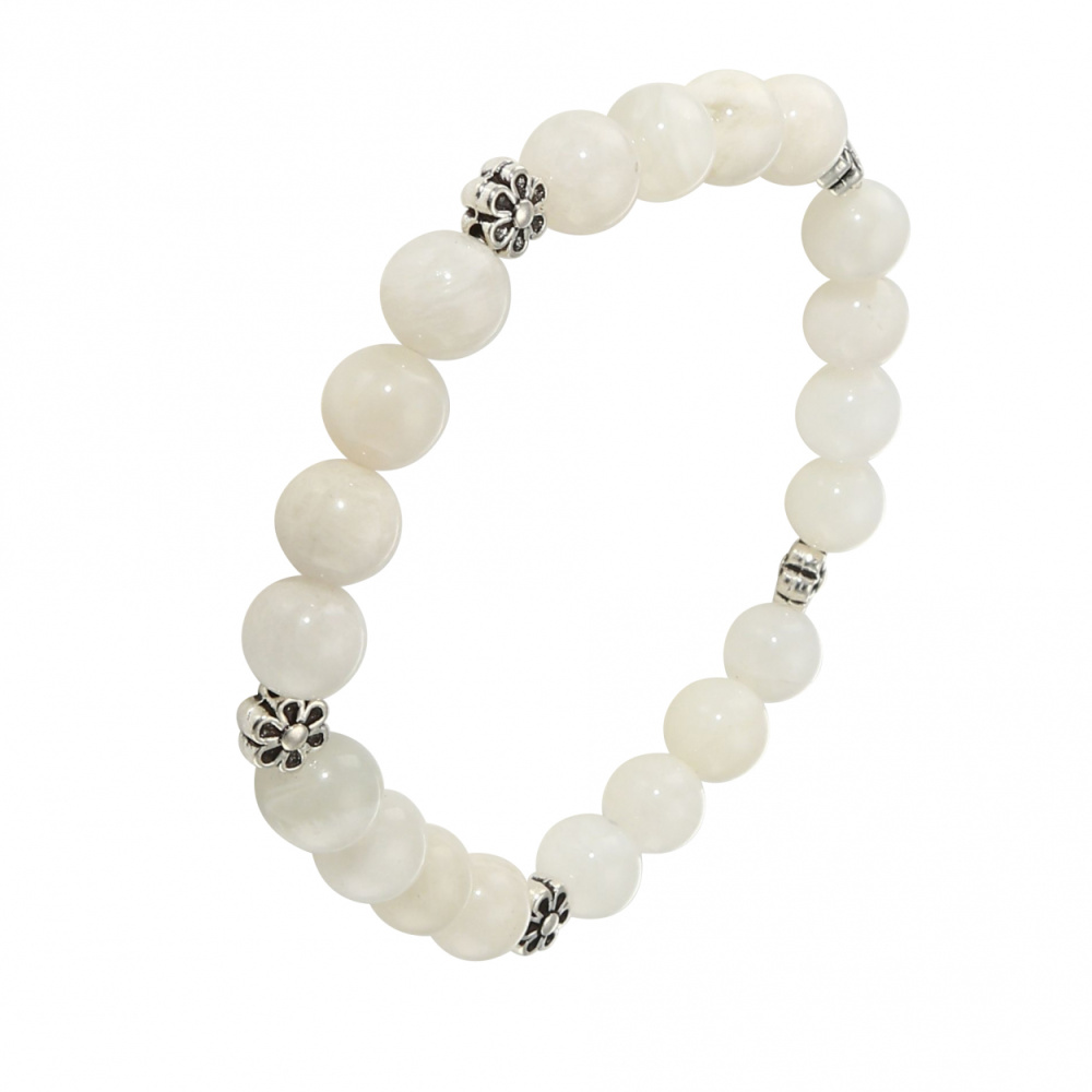 Bracelet Pierre de Lune 8mm et Motif Fleur