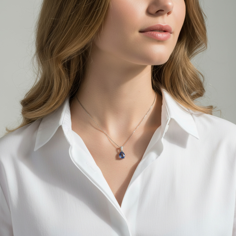 Pendentif en Or Blanc 750 serti d'un Saphir de Ceylan Poire de 8x6mm