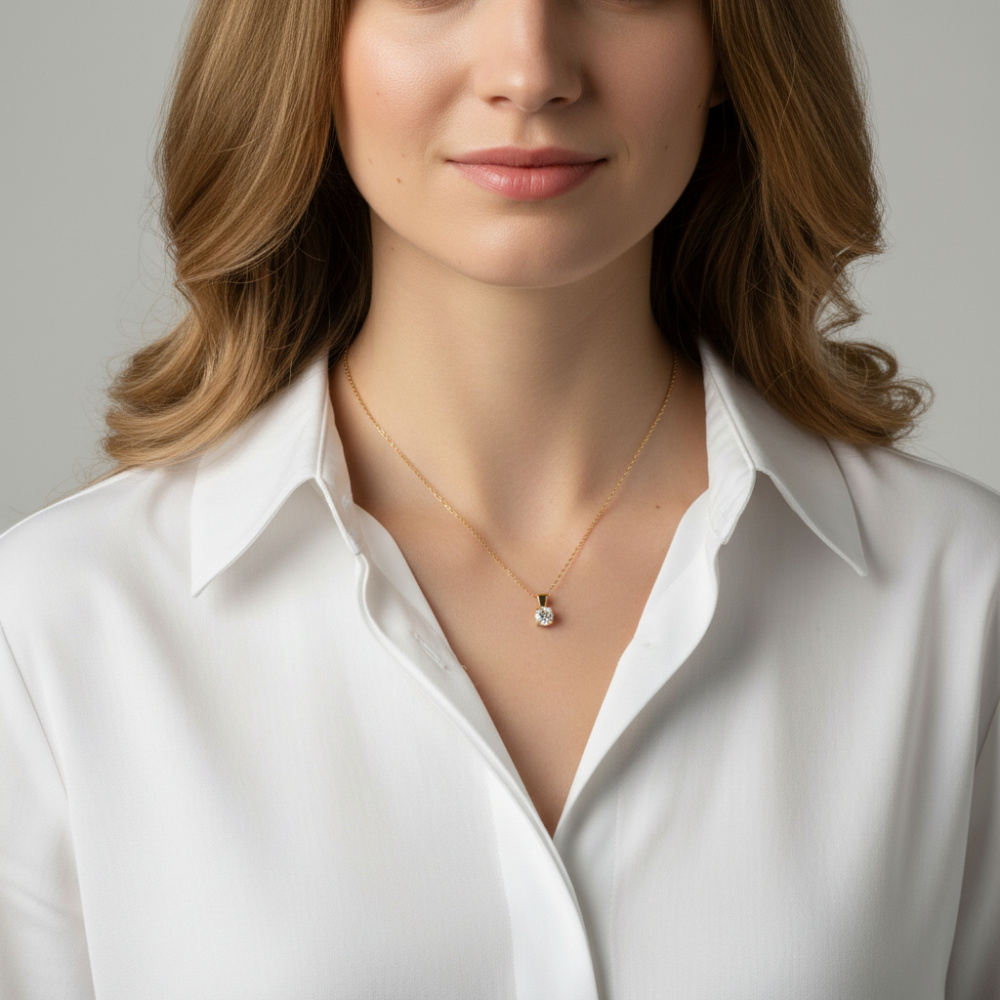 Pendentif en Or Jaune 750 serti d'un Diamant rond de 5.75mm de diamètre (0,90 carat - Couleur J - Pureté Si1)