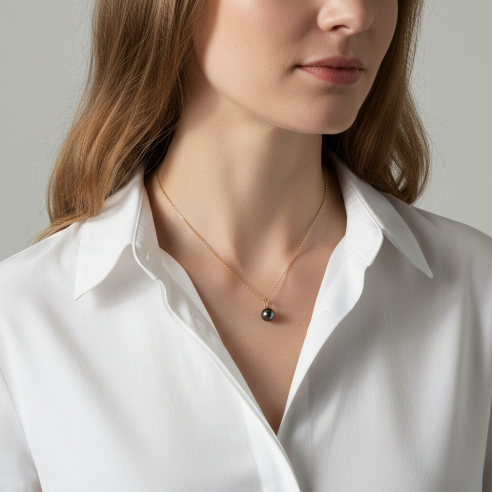 Pendentif Or Jaune 750 Perle de culture Tahiti 8mm