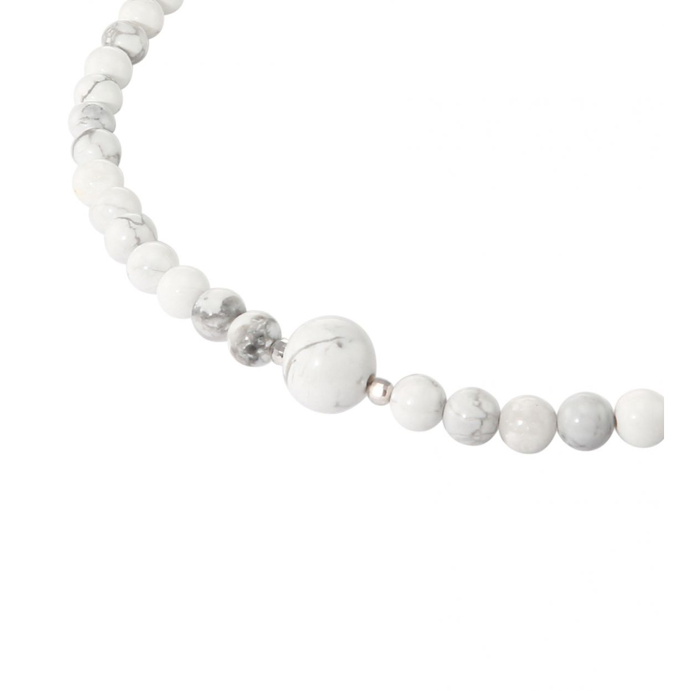 Ce collier est composé de boules de 6mm en Howlite , de 2 perles facettées en Argent de 4mm de diamètre et d'une perle 10mm en en son centre