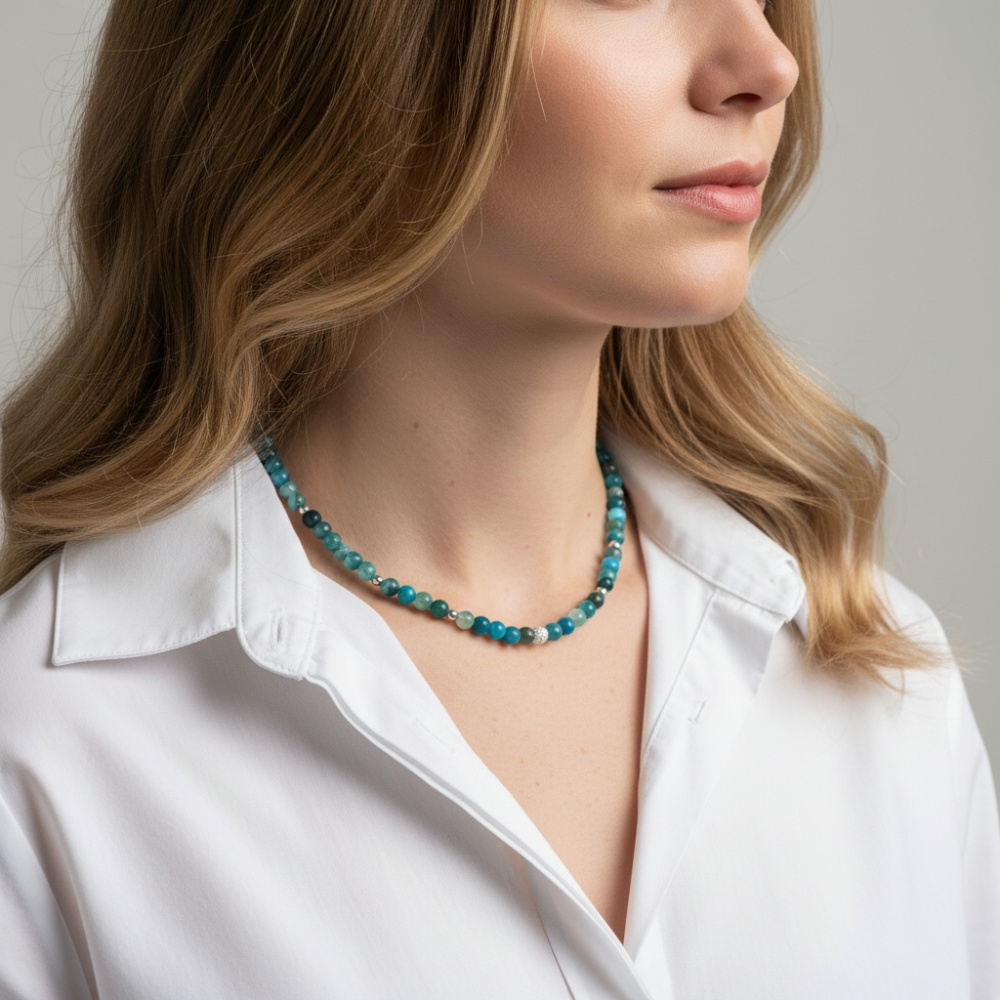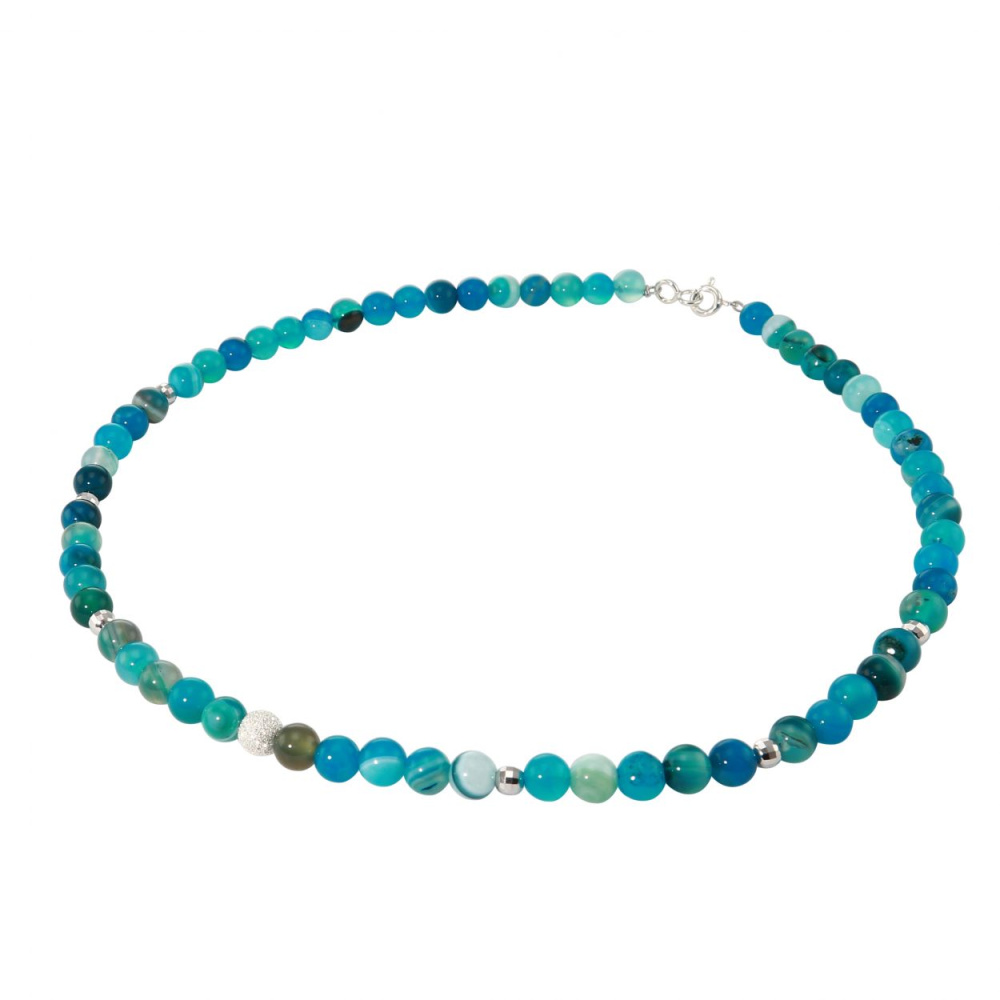 Collier Agate Bleue Teintée 6mm et Argent - Ref : 52689