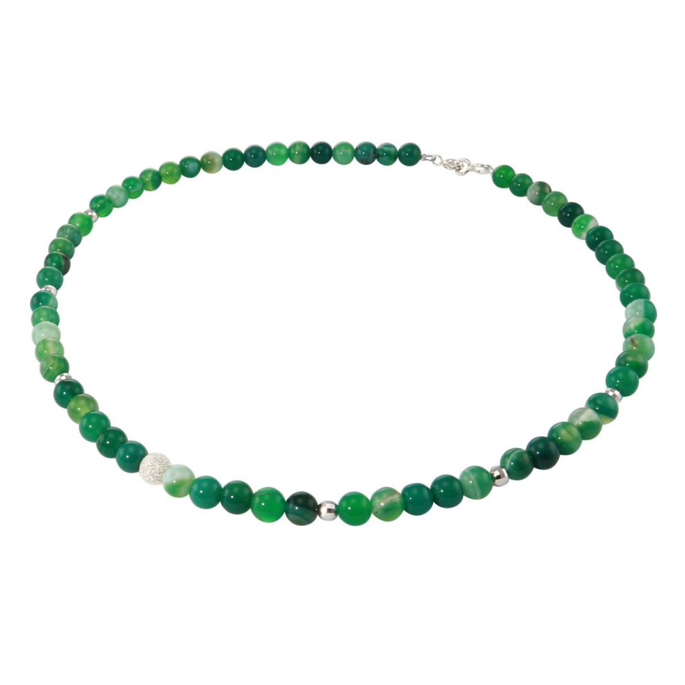 Collier Agate Verte Teintée 6mm et Argent - Ref : 52688