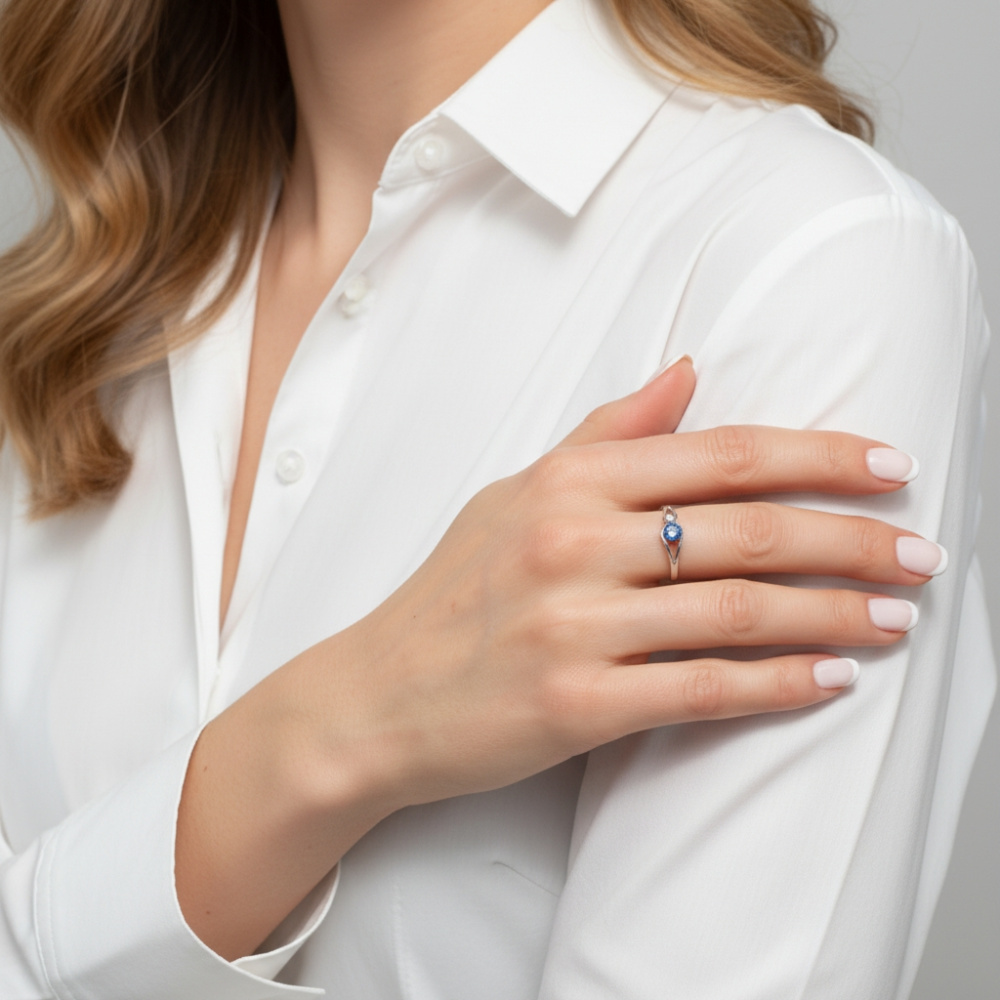 L'amour plane sur cette superbe bague en or blanc. Conjuguant luxe, féérie et élégance, ce bijou fera rêver son heureuse destinataire. Il peut parfaitement faire office de bague de fiançailles pour célébrer dignement le début d'une vie à deux. La pièce est composée d'un saphir de Ceylan au bleu irréel qui arbore une forme ronde et facettée. La pierre précieuse est joliment maintenue par un serti demi-clos. En face trône un diamant rond également maintenu par un serti demi-clos à l'aura très contemporaine.