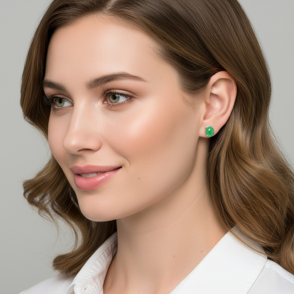 Boucles d'oreilles Or Blanc 750 Jade Traité Ovale 8x6mm - Ref : 53995