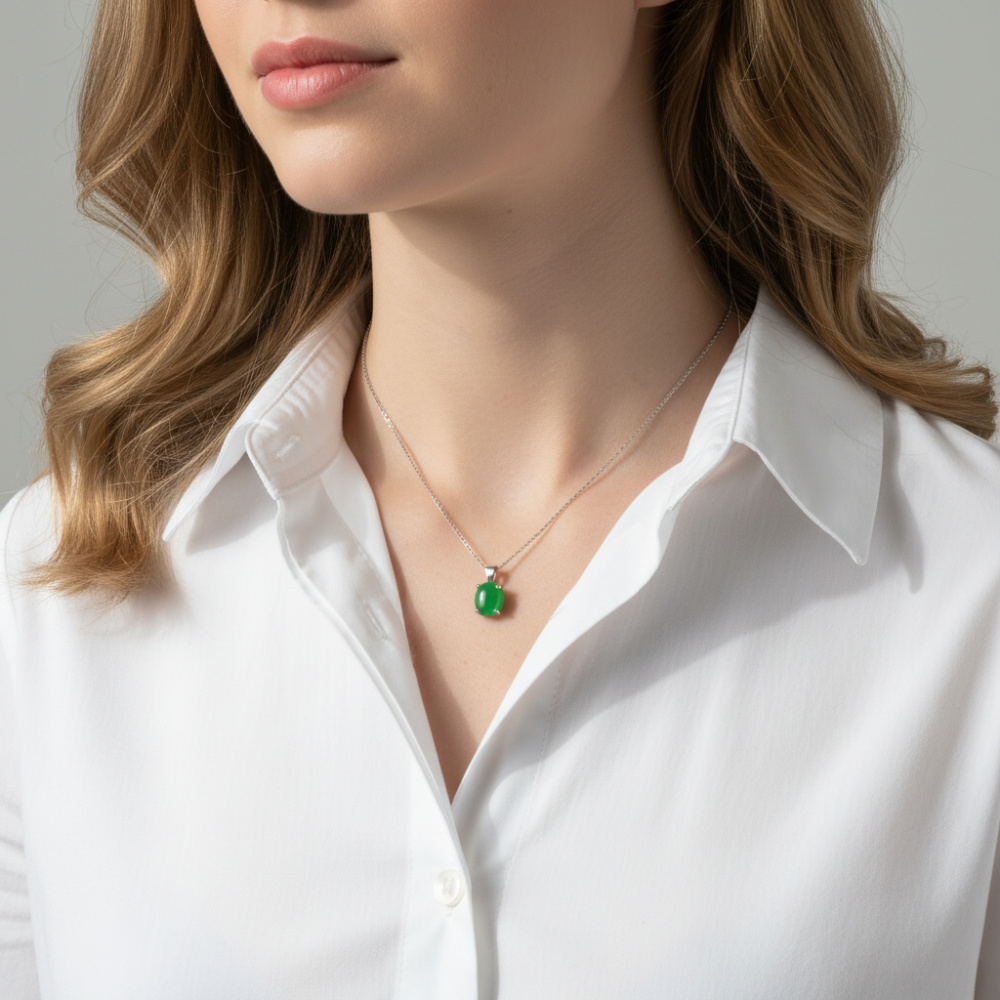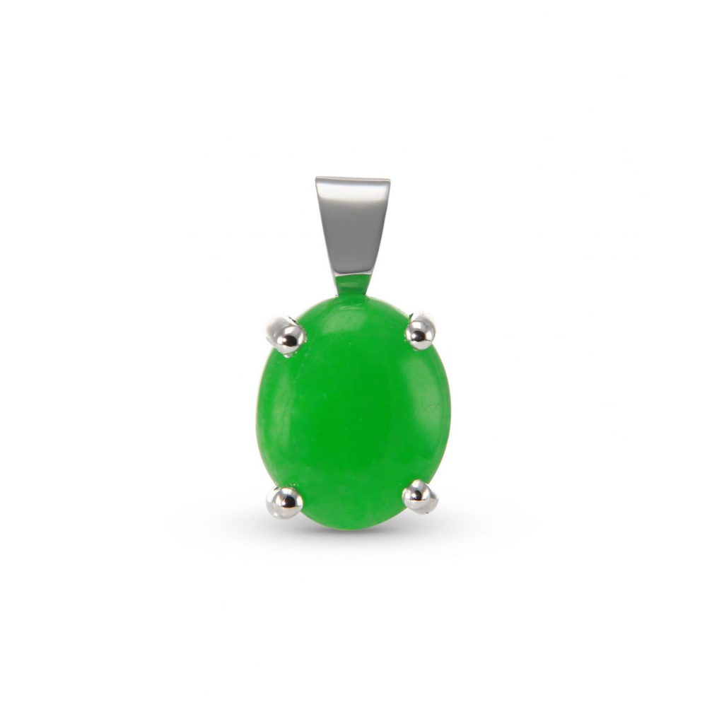 Pendentif en Or Blanc 750 serti d'un Jade Ovale de 10x8mm