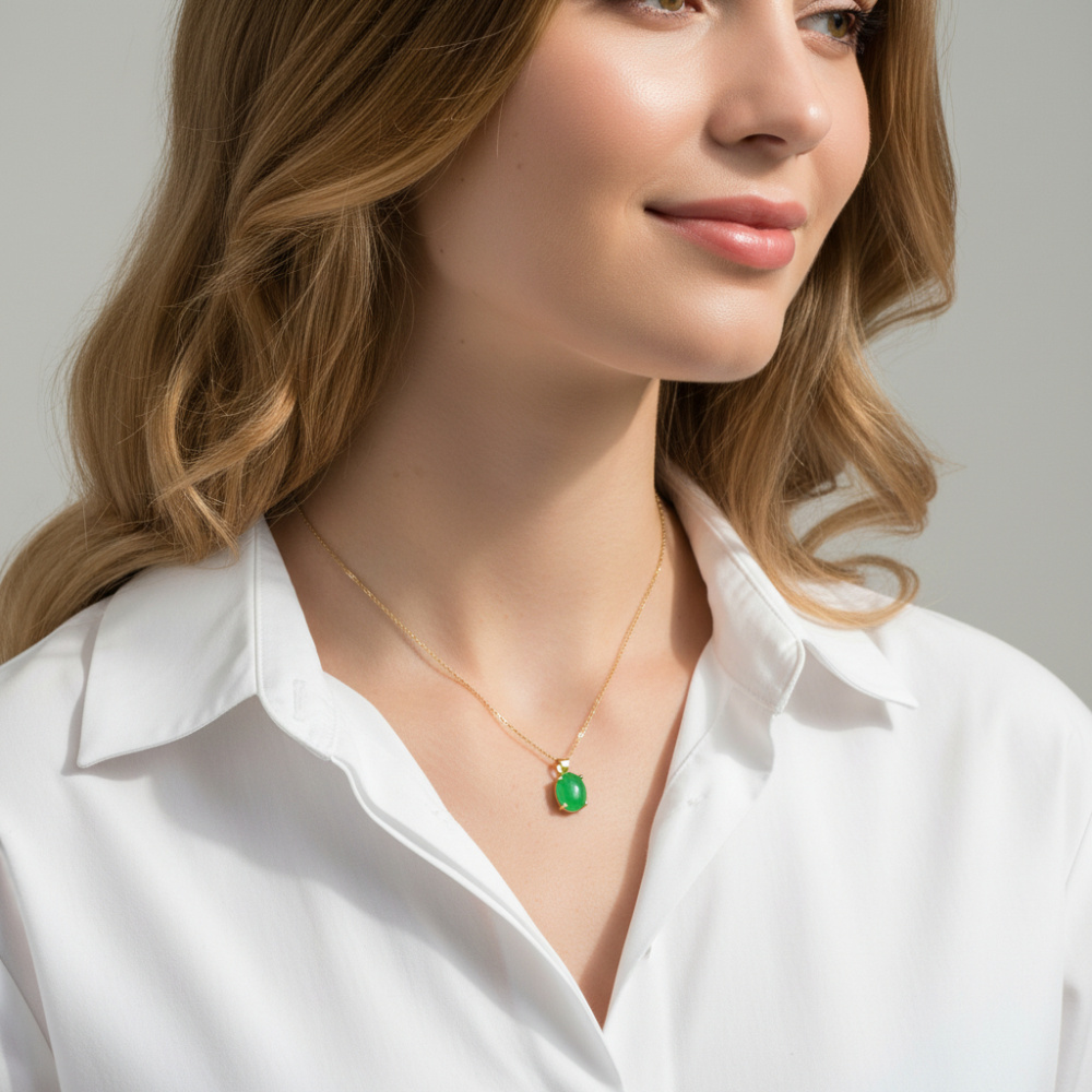 Pendentif en Or Jaune 750 serti d'un Jade Ovale de 12x10mm