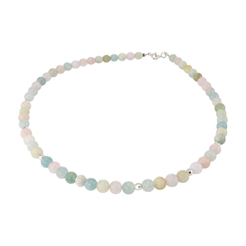 Avec ses douces couleurs pastel, le béryl apporte une touche de festivité et de bonne humeur à ce collier pour femme. Il prend la forme d'une multitude de boules implantées sur un câble en acier qui est composé d'un fermoir à ressort en argent. Les minéraux sont relayés par des perles d'argent facettées et une perle martelée qui donne un très joli rendu. On raconte qu'ils seraient recommandés pour instaurer l'équilibre psychique, stimuler la spiritualité et détoAvec ses douces couleurs pastel, le béryl apporte une touche de festivité et de bonne humeur à ce collier pour femme. Il prend la forme d'une multitude de boules implantées sur un câble en acier qui est composé d'un fermoir à ressort en argent. Les minéraux sont relayés par des perles d'argent facettées et une perle martelée qui donne un très joli rendu. On raconte qu'ils seraient recommandés pour instaurer l'équilibre psychique, stimuler la spiritualité et détoxifier l'organisme.xifier l'organisme.