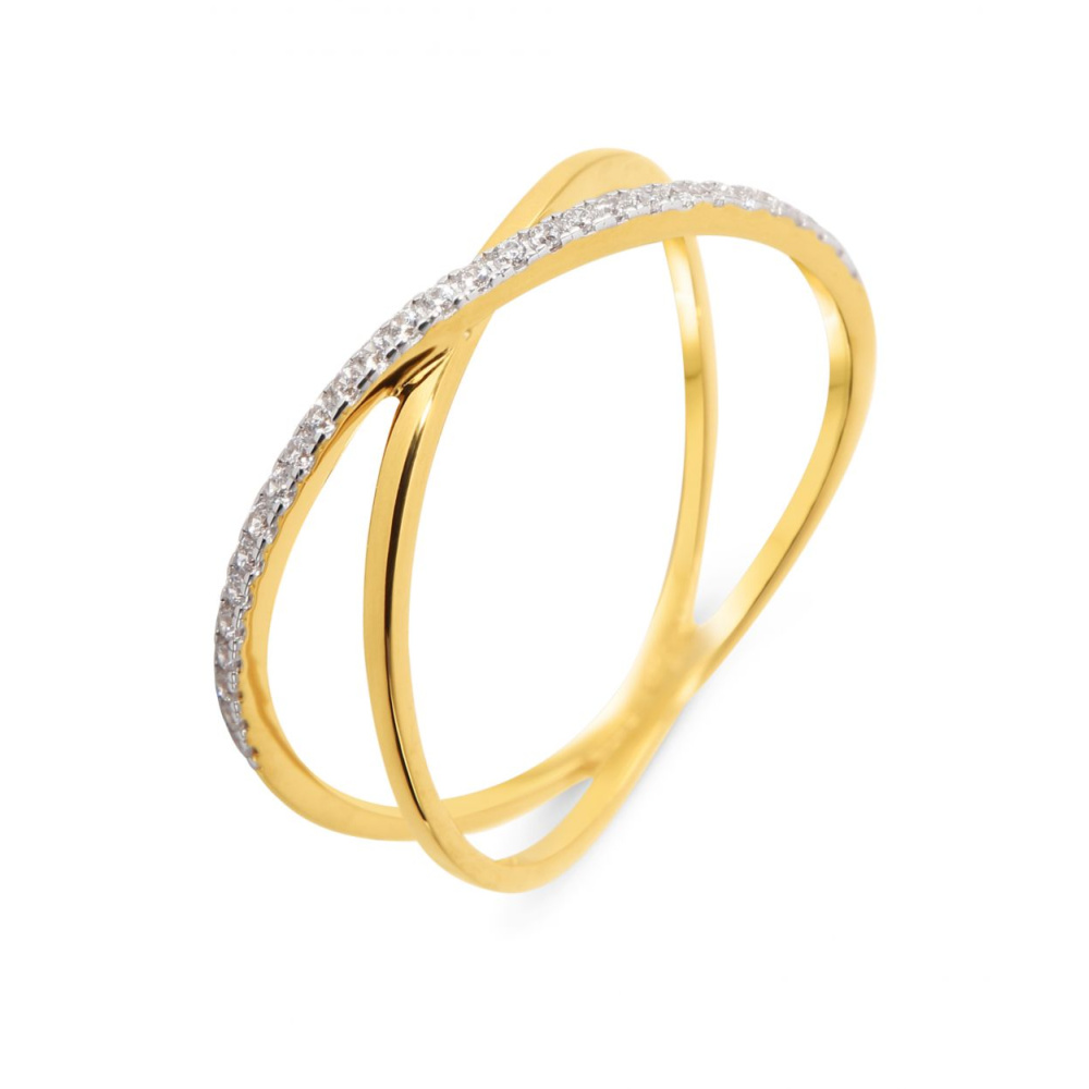 Donnez un style élégant et moderne à toutes vos tenues vestimentaires grâce au choix du bon bijou. Misez sur cette radieuse bague en or jaune qui procure un éclat ensoleillé à votre peau. La pièce à corps croisé est joliment constituée de deux anneaux entrelacés dont l'un est serti d'une belle cascade d'oxydes de zirconium blancs maintenus par serti rail. Infiniment précieux et délicat, ce bijou sied aux femmes dans l'air du temps