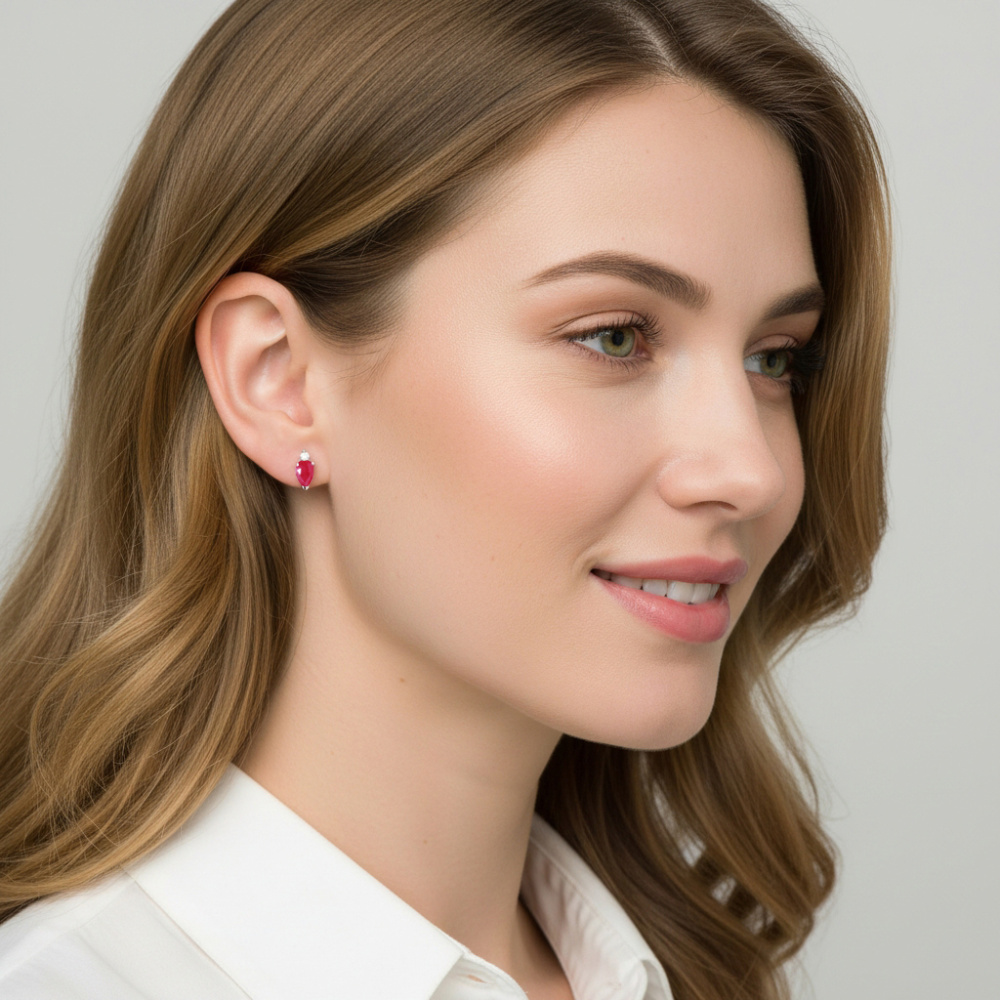 Chaque boucle est sertie d'un rubis poire de 6x4mm et d'un diamant rond de 2mm de diamètre