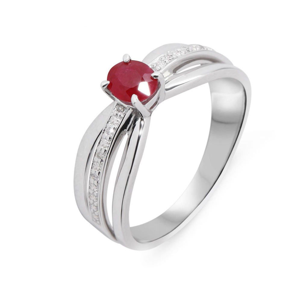 Bague Or Blanc 750 Rubis Ovale 5x4mm et Diamants