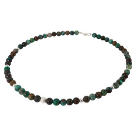 Bracelet Chrysocolle 6mm et Argent - Ref : 54656