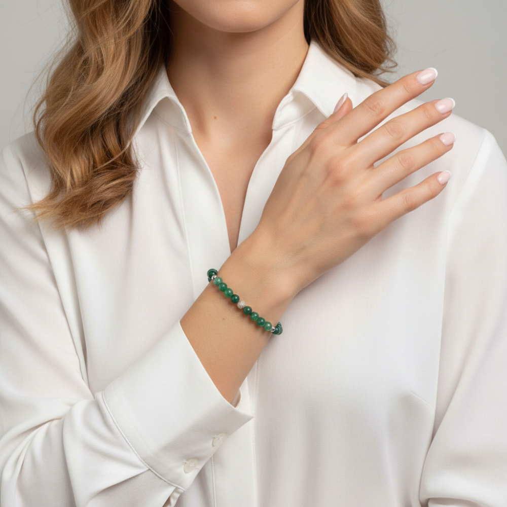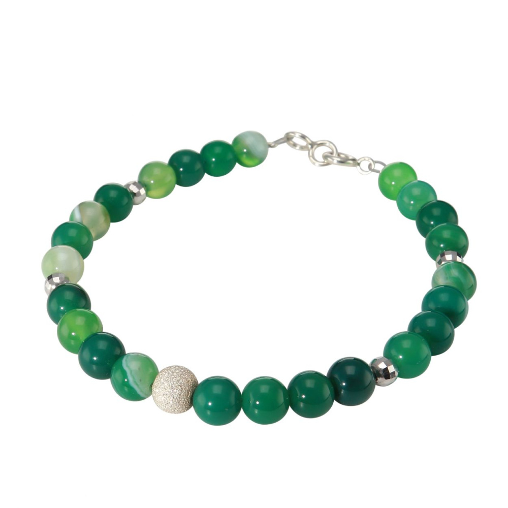 Bracelet Agate Verte Teintée 6mm et Argent