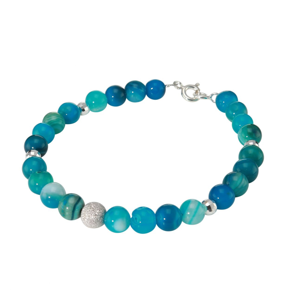 Bracelet Agate Bleue Teintée 6mm et Argent