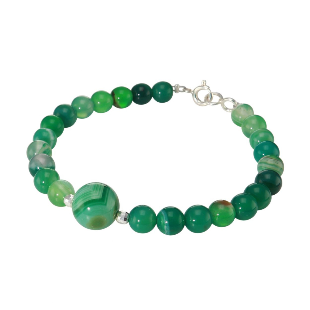 Bracelet Agate Verte Teintée 6-10mm et Argent